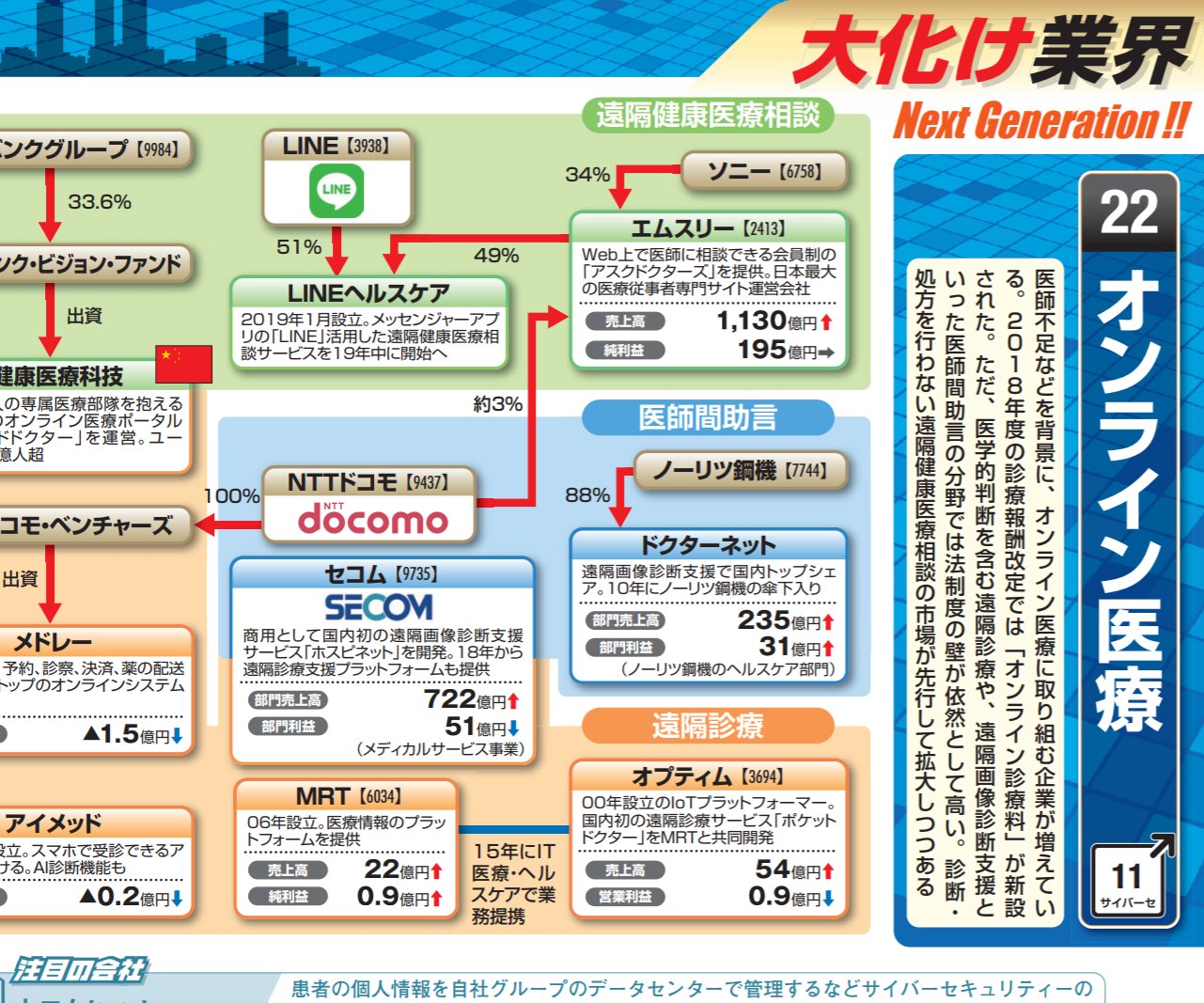 会社四季報 On Twitter こんなこともあろうかと その8 オンライン診療が話題ですが 会社四季報 業界地図 は 大化け業界 コーナーで オンライン医療 業界を初掲載 左下のメドレーは昨年12月に上場しましたね 会社四季報業界地図 Https T Co