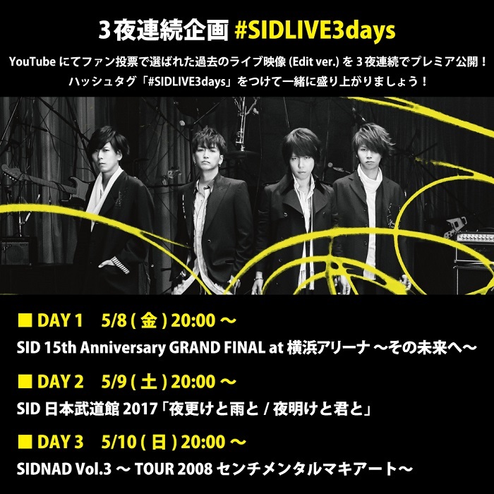 シド 5月8日より3夜連続でyoutubeにて過去のライブ映像をプレミア公開決定 Spice エンタメ特化型情報メディア スパイス