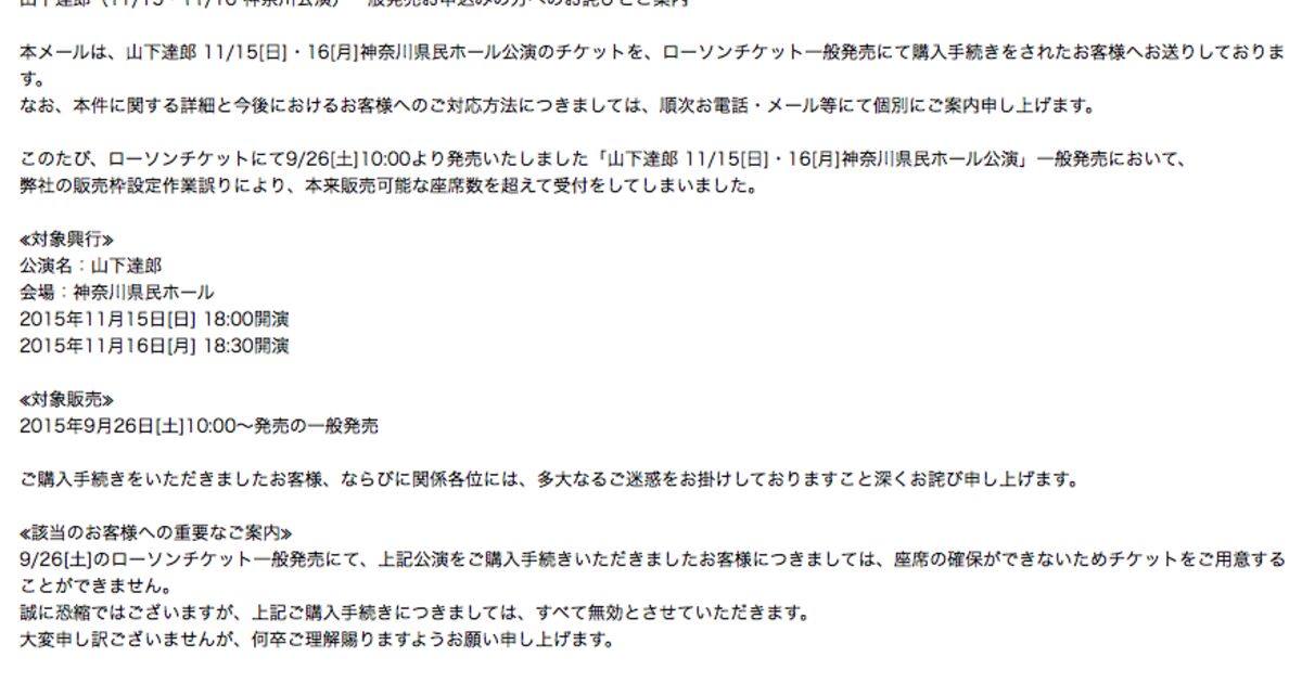 えぇぇぇーん ローソンチケット 山下達郎コンサートで座席の2倍受け付け 謝罪 Togetter