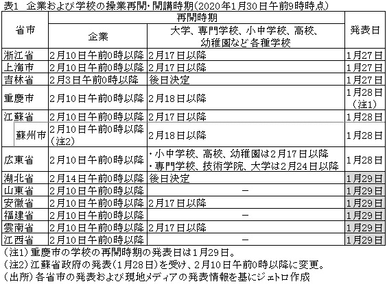 操業開始時期の延期が各省に波及 湖北省は2月14日までの延期を発表 中国 ビジネス短信 ジェトロ