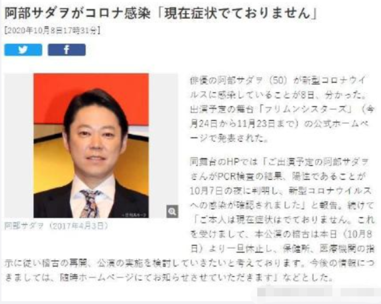 学习 沪江日语 今天又有两位艺人确诊 演员阿部贞夫 50 中川大志 22 都确认感染了新冠病毒 微博精选手机版 微博国际