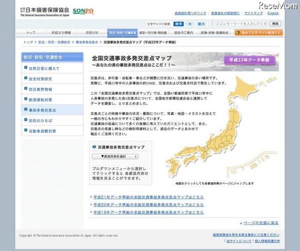 日本損保協会 全国交通事故多発交差点マップ を更新 一般社団法人 日本自動車会議所
