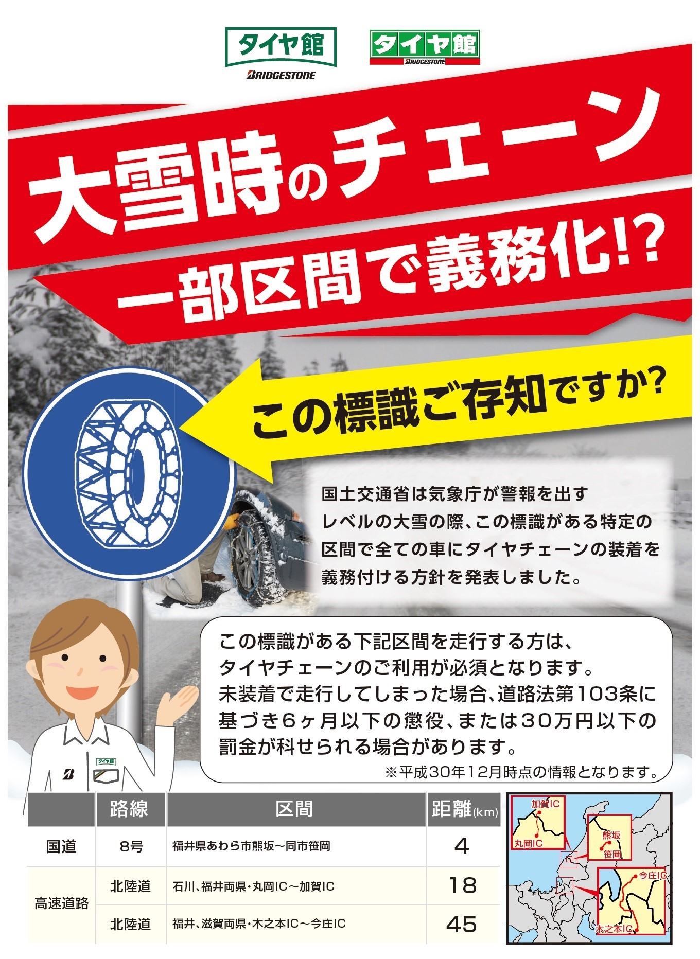 北陸エリアのチェーン規制について スタッフ日記 タイヤ館 コマツ 石川県 福井県のタイヤ カー用品ショップ タイヤからはじまる トータルカーメンテナンス タイヤ館グループ