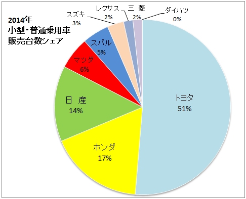 国内新車販売台数 2015年 のメーカーシェアのグラフ 研究ノート 大学教員の徒然