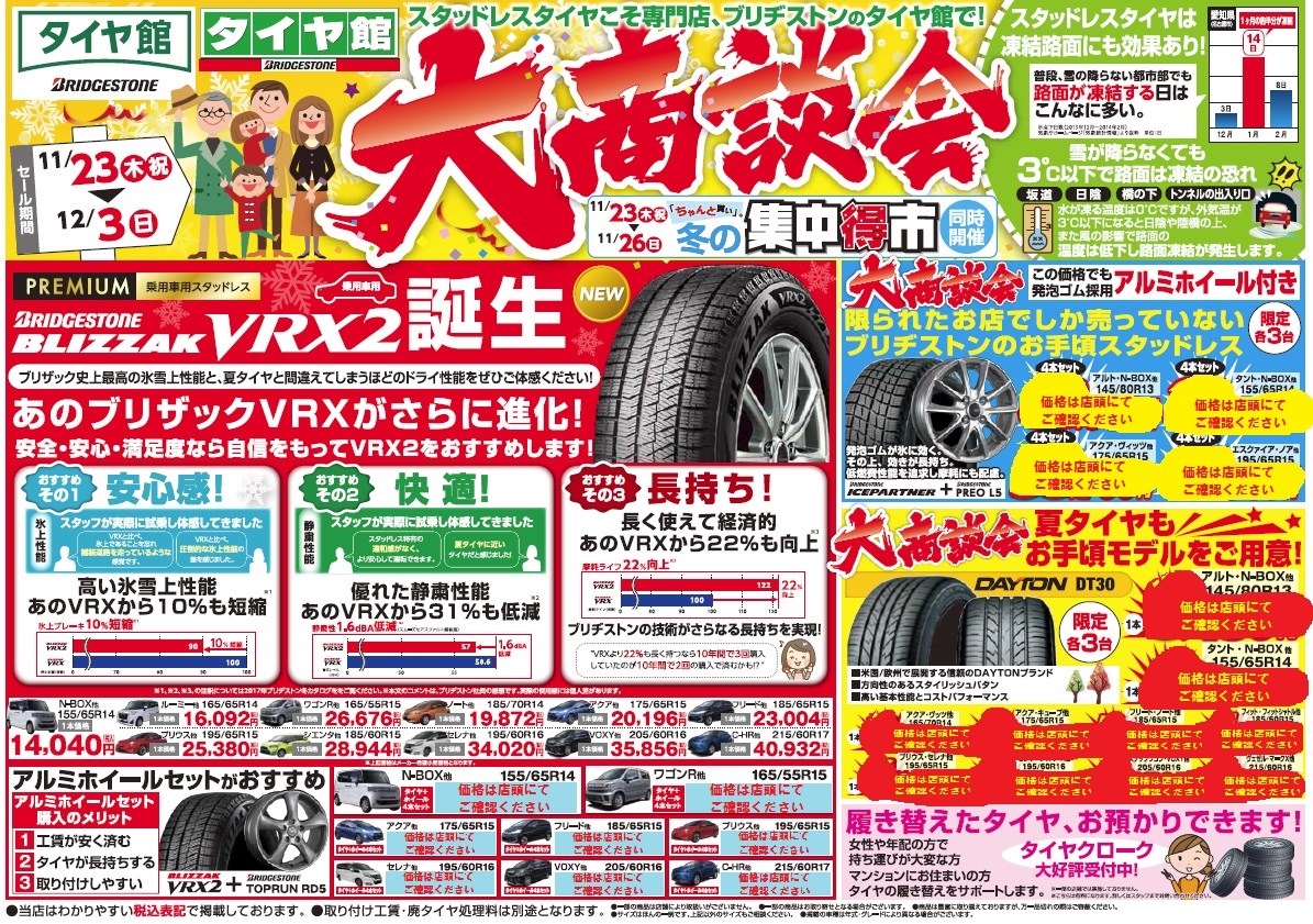 あと4日 シーズン切り替わりセール 夏タイヤ 冬タイヤ 大商談会 は12月3日まで開催中です スタッフ日記 タイヤ館 一宮バイパス 愛知県 三重県のタイヤ カー用品ショップ タイヤからはじまる トータルカーメンテナンス タイヤ館グループ