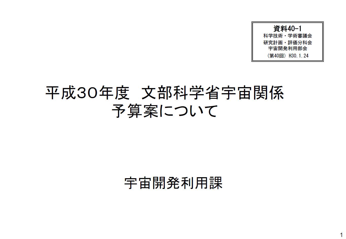 Ogawa Tadashi Na Twitteru 宇宙開発利用部会 第40回 配付資料 平成30年1月24日 公開 2月6日 Https T Co 2hjlx48vcb 平成30年度文部科学省宇宙関係予算案について Https T Co Dtsc148nzu