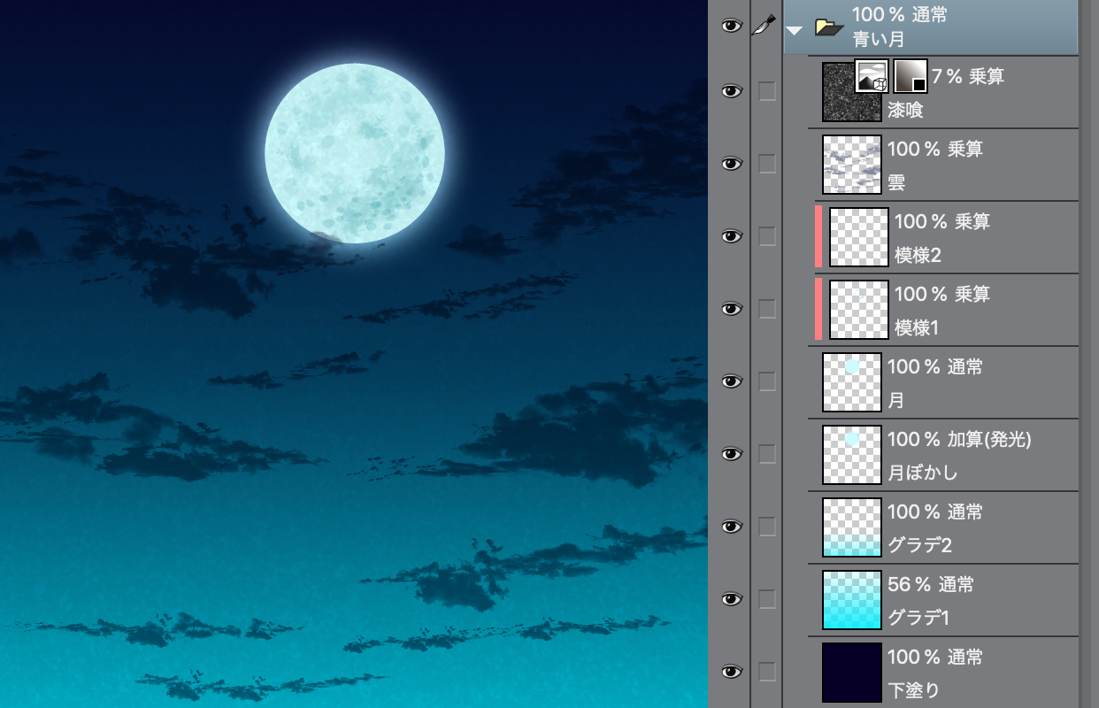 グラデーションツールを利用した月夜の描き方 By Kawashita Clip Studio Tips