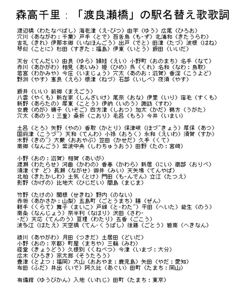 森高千里 渡良瀬橋 の駅名替え歌歌詞 栃木那須 初代 さんのイラスト ニコニコ静画 イラスト