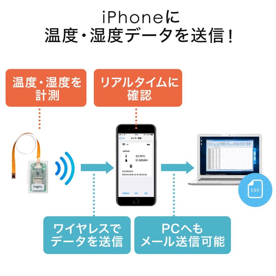 温湿度センサー スマホ連携 ワイヤレス Bluetooth 温度計 湿度計 ログ記録 ログッタ ケーブル計測30cm デジタル サンワダイレクト 通販 Paypayモール