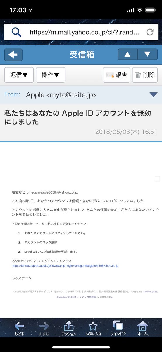 ある日突然 あなたのapple Idアカウントを無効にしました ってメールが来た 怪しいメールにご注意を 今迷っているやつは一生迷ってる