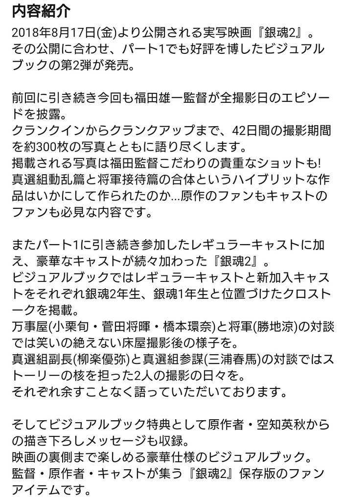 O Xrhsths かめ吉 Sto Twitter 8月17日発売 映画 銀魂2 掟は破るためにこそある Silver Memories ビジュアルブック 福田監督が全撮影日のエピソード披露 42日間 写真約300枚 万事屋 小栗旬 菅田将暉 橋本環奈 と将軍 勝地涼 の対談 真選組副長 柳楽