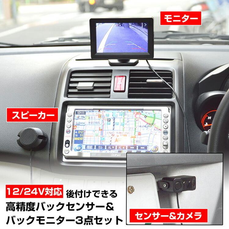 バックモニター 車 バックセンサー モニターセット 24v対応版 Backsn24 自動車 トラック カメラセット 後付け 後方 バック 距離 表示 警告音 Acc電源 サンコー S7783 生活雑貨 通販 ランデルストア 通販 Yahoo ショッピング