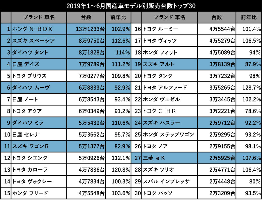 上位4モデルを軽が独占 あのクルマはナゼ売れる 2019年上半期 国産車新車販売トップ30 ベストカーweb 自動車情報サイト 新車 中古車 Carview